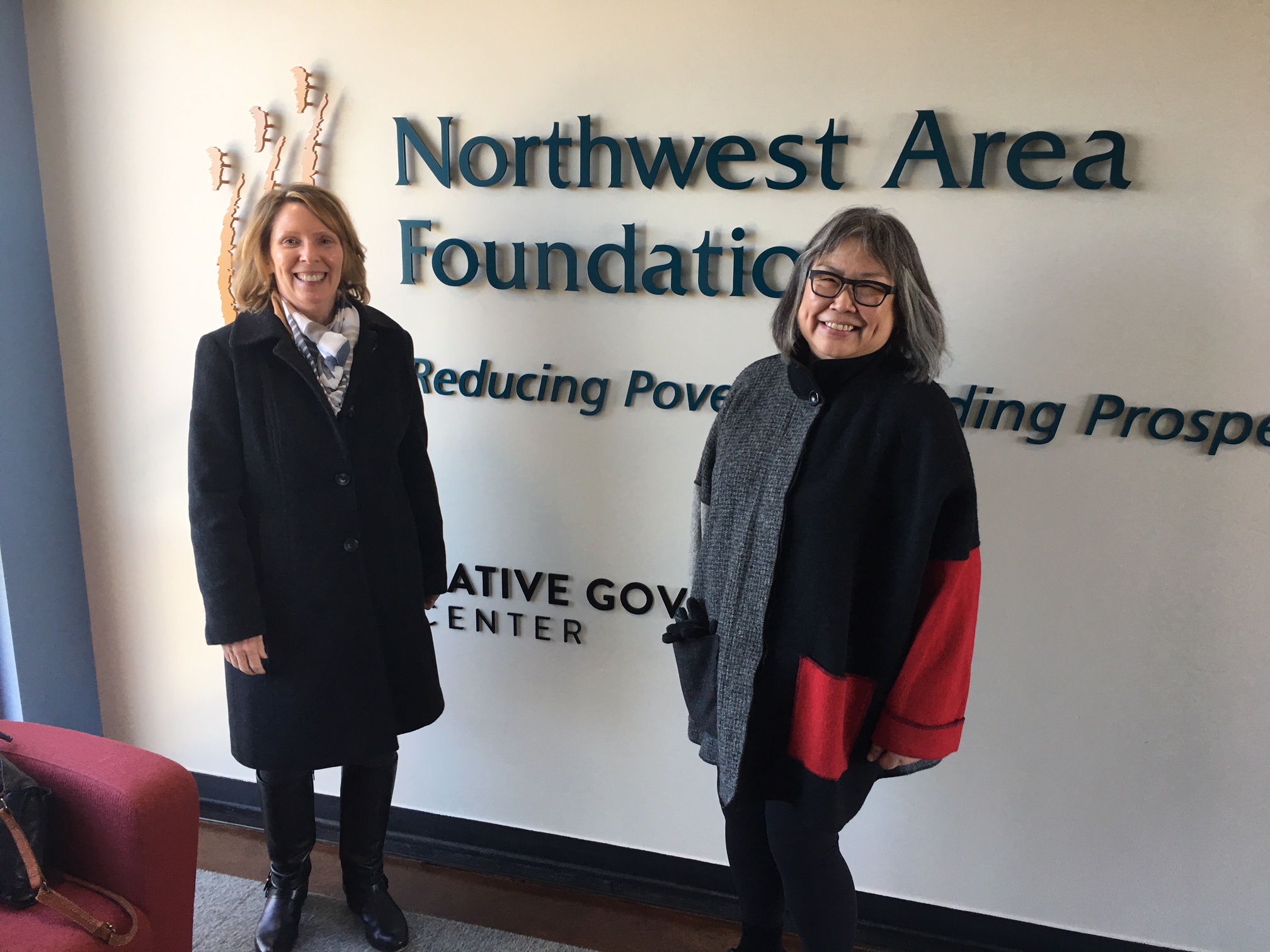 Rainbow Research’s Executive Director Mary McEathron and Associate Director Rebecca (Beki) Saito at NWAF’s headquarters in St. Paul, Minnesota.