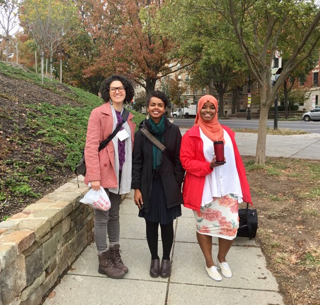 Katie Fritz-Fogel (Research Associate), Selam Tilahun (Research Assistant) and Maryan Gaafaa (Research Intern) at the opening day of the conference.