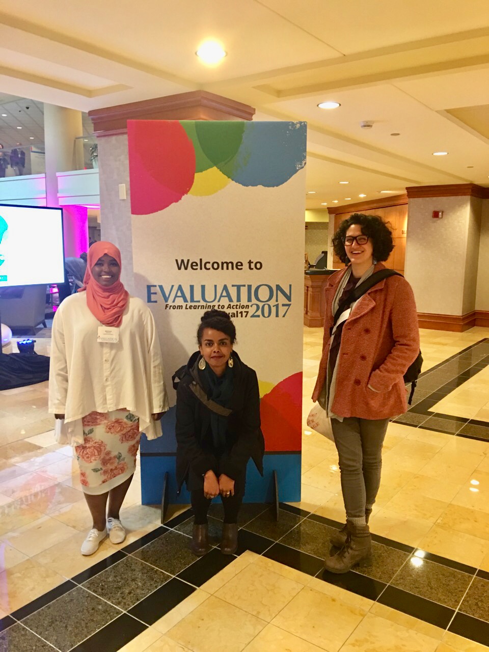 Katie Fritz-Fogel, Selam Tilahun and Maryan Gaafaa heading back to the land of snow and ice (Minneapolis, Minnesota), having shared and learned with Evaluators from across the world.